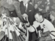 Montreal Canadiens captain Butch Bouchard is presented to Princess Elizabeth. New York Rangers captain Frankie Eddolls looks on - October 29, 1951.