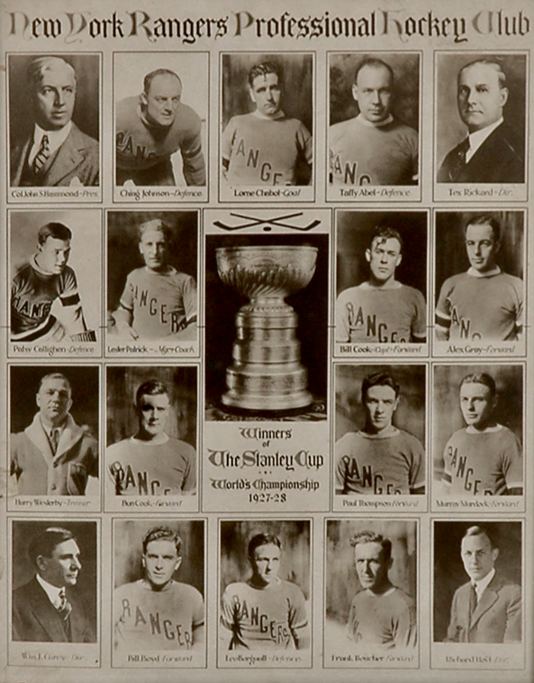 Top Row L to R - Col. John Hammond (president), Ching Johnson, Lorne Chabot, Taffy Abel, Tex Rickard (director).