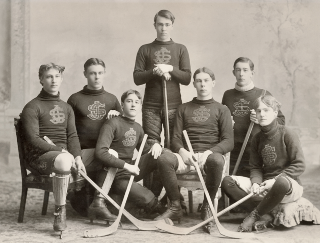 L to R - John Garrett Cory, Eric Werge Hamber, R. Holiday, D. Morrison, Robert Allison Cayne “Pat” Manning (captain), Reginald Harry Brett, Claude Edward "Teddy" Fortin.
