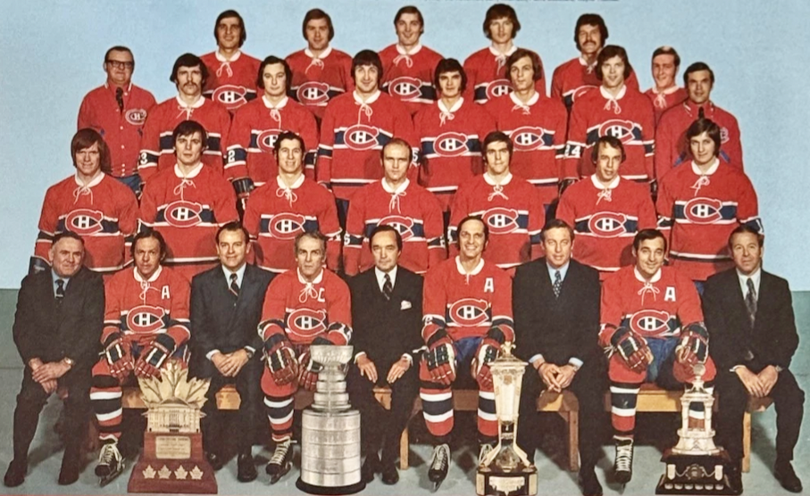 3rd Row - Eddy Palchak (assistant trainer), Bob Murdoch, Steve Shutt, Guy Lapointe, Michel Plasse, Guy Lafleur, Chuck Lefley, Bob Williams (trainer).