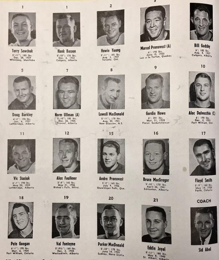 3rd Row - Vic Stasiuk, Alex Faulkner, André Pronovost, Bruce MacGregor, Floyd Smith.