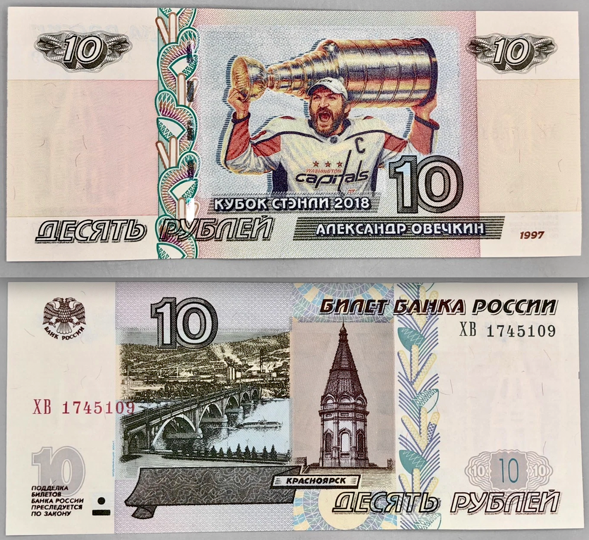 Hockey Money - Russia 10 Rubles Banknote with Alex Ovechkin Александр Овечкин