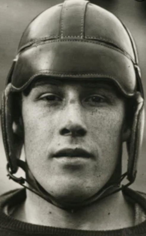 *Legend has it Owen was the first player to don a helmet in an NHL game, wearing the same leather helmet that he had worn when playing college football. However, Marty Burke of the Montreal Canadiens is known to have worn a helmet briefly during a game in December 1928, and Ernie “Moose” Johnson is wearing a football helmet in a PCHA 1914 Portland Rosebuds photo.