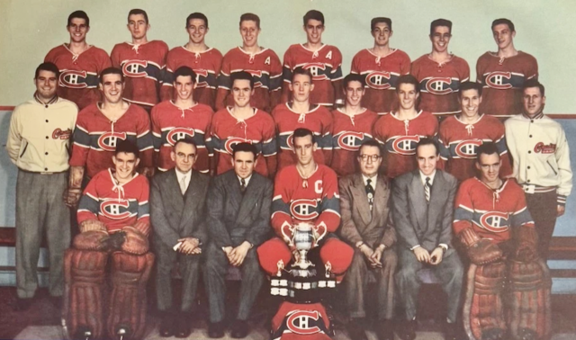 The Memorial Cup of 1950 saw two farm teams of the Montreal Canadiens playing each other for the top junior prize. The Junior Canadiens defeated the Regina Pats in a best-of-seven game series by 4 games to 1, winning on home ice at the Forum.
