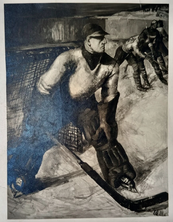 German painter Carl Otto Müller received an Honorable Mention for his work Der Eishockey-Tormann (The Hockey Goalie) in the Art Competitions in the category Paintings at the 1936 Berlin Olympics.