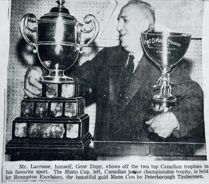 Gene Dopp was inducted into the Ontario Lacrosse Hall of Fame in 1965 (builder) considered a Charter Member.