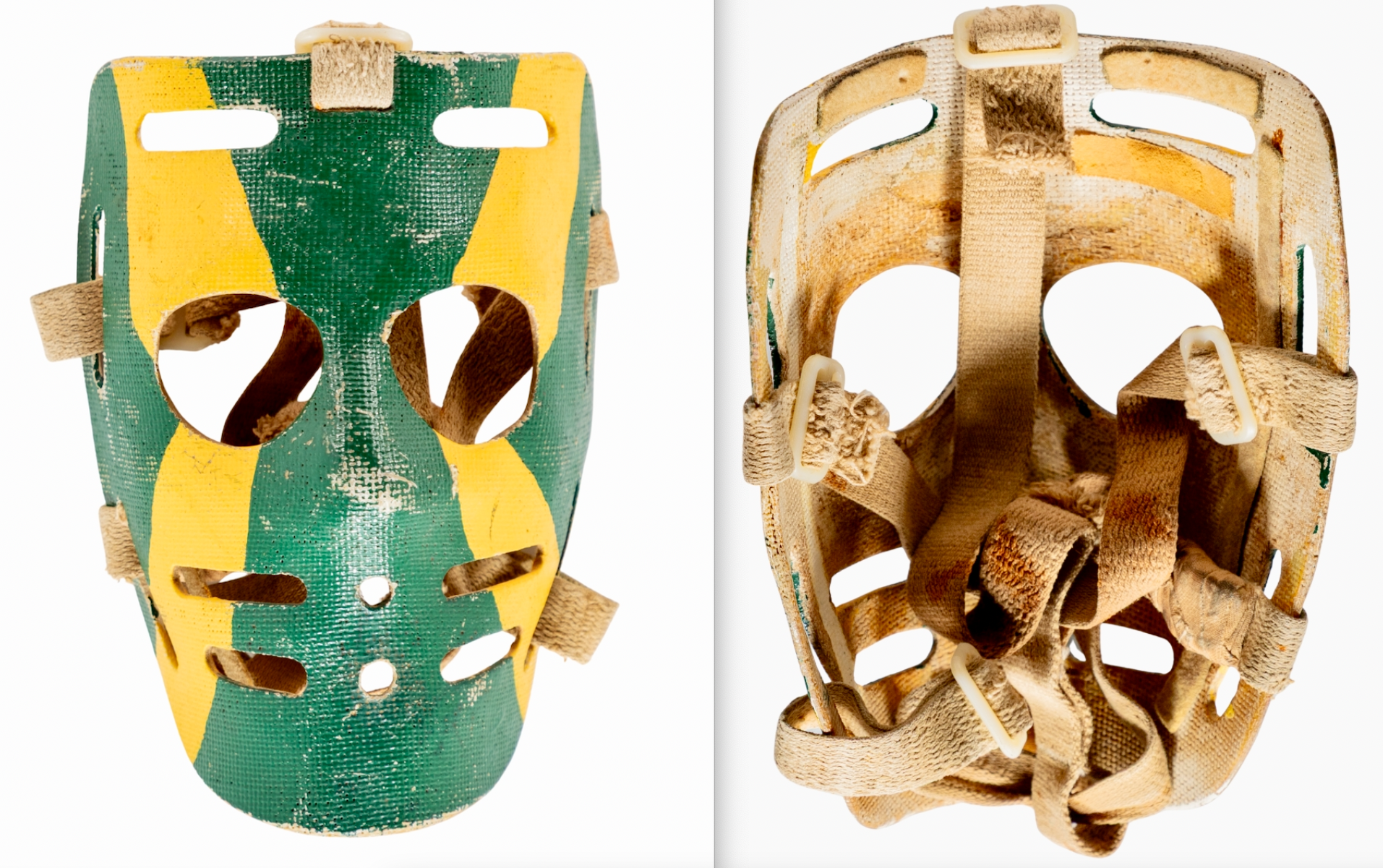 Ross "Lefty" Wilson was a early mask maker for goaltenders. Terry Sawchuk was the 1st NHL goalie to wear his mask. Cesare Maniago, Roy Edwards were also a NHL goalies who wore his masks.
