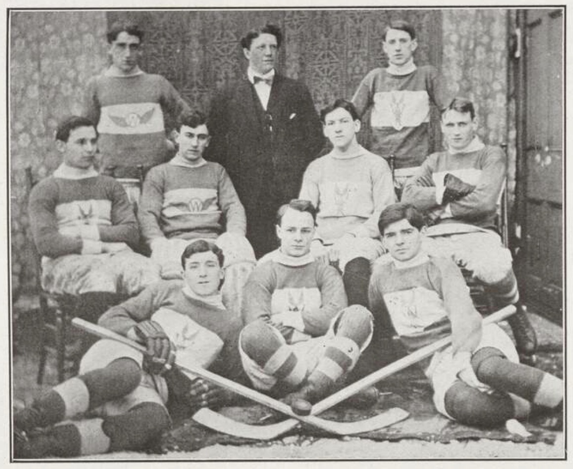 Roster: Randy Peters (goal), Joe Kirlin (point), H. Gifford (cover point), W. Bradford (left wing), Ted Turner (rover), Joseph Bradford (center), H. Grimsdale (right wing), James McGranahan (spare forward), Billy Lacken (spare defence)