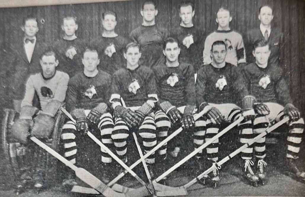 Back Row - Keeler, Robert MacPherson, Bob Bennett, Donald Otis, Bill Adams, Red Pounder, Herb Gill (coach).