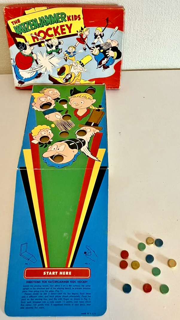 The Katzenjammer Kids Hockey Game is based on the famous comic strip characters.