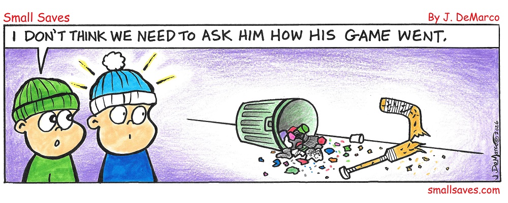 I think a certain goalie had an "off day" playing hockey. Enjoy the latest antics of Small Saves.