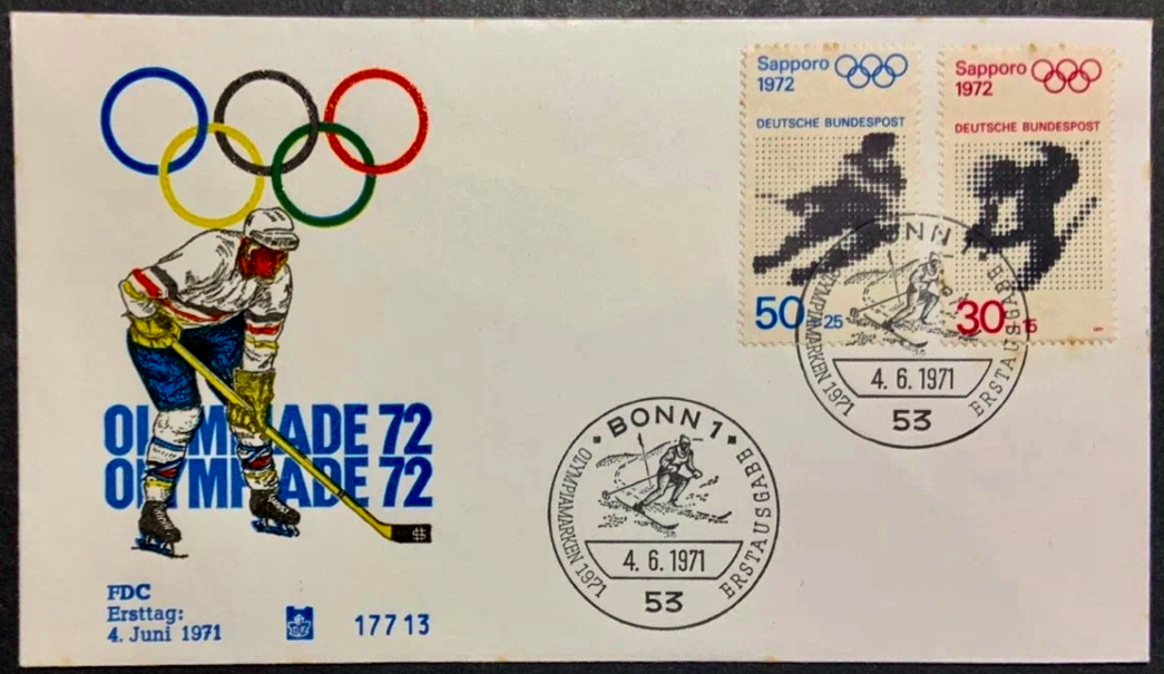 Hockey First Day Cover for the 1972 Winter Olympics in Sapporo, Japan with Hockey Stamp.