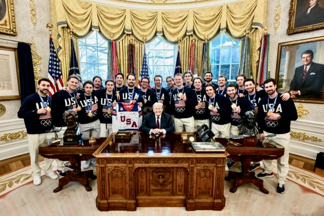 2026 Winter Olympics Gold Medal Champions Team USA visit Donald Trump in White House Oval Office on February 24, 2026.