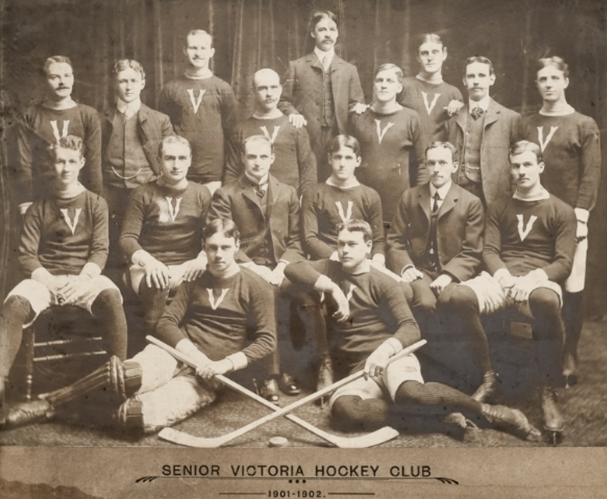 Middle Seated - Blair Russel, William "Billy" Strachan, James Strachan, Russell Bowie (captain), Albert Douglas Kyle (president), Percy Molson.