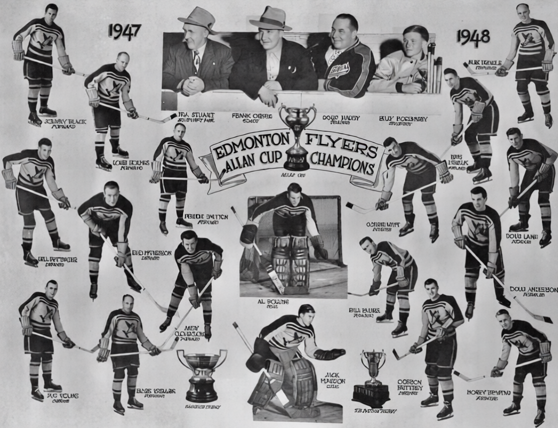 The Flyer’s thrilling victory over the Ottawa Senators energized the entire city of Edmonton, and their victory parade attracted more than 65,000 people, half the population of Edmonton in 1948. The national title was only the third national Hockey title ever won by an Alberta team, and several members of the team would go on to successful careers in the National Hockey League.