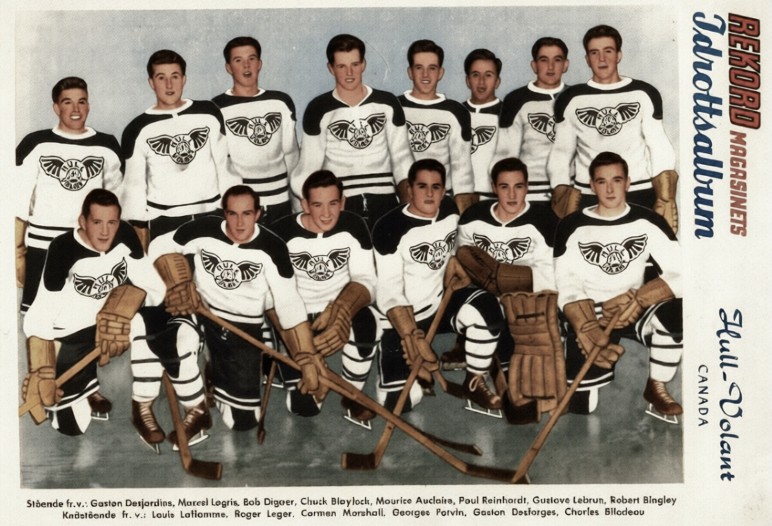 Top Row - Gaston Desjardins, Marcel Legris, Bob Diguer, Chuck Blaylock, Maurice Auclair, Paul Reinhardt, Gustave Lebrun, Robert Bingley.