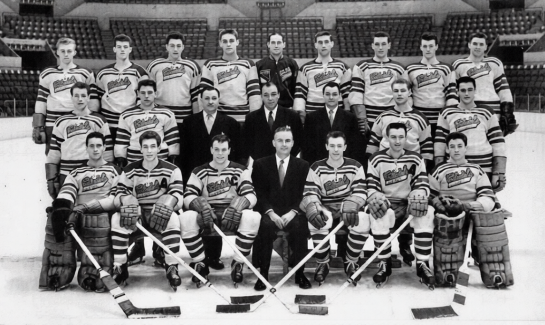 Front Row L to R - Marcel Paillé, Camille Henry (A), Gordie Haworth (captain), Frank Byrne (sponsor), Bruce Cline, Aggie Kukulowicz (A), Jacques Marcotte.