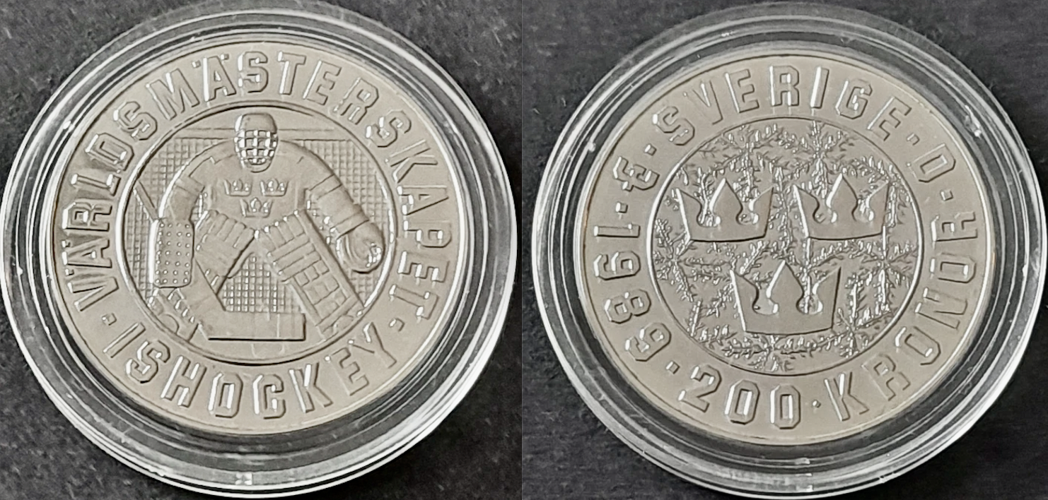 Silver Hockey Coin - 1989 Sweden 200 Kronor