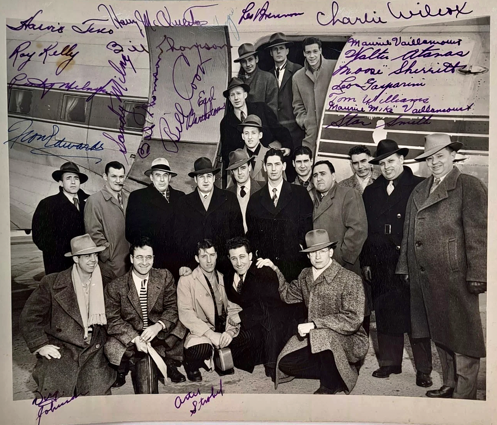 Pinky Melnyk, Art Strobel, Virgil Johnson, Roy Kelly, Maurice Vaillancourt, Walter Atanas, Sandy Milne, Les Brennan, Stan Smith, Moose Sherritt, Leo Gasparini, Tom Williams, Bill Thompson, Earl Bartholomew, Harry McQueston (goalie), Harvie Teno (goalie). Charlie Wilcox (trainer), Fred Edwards (publicity), Bill Cook (coach).