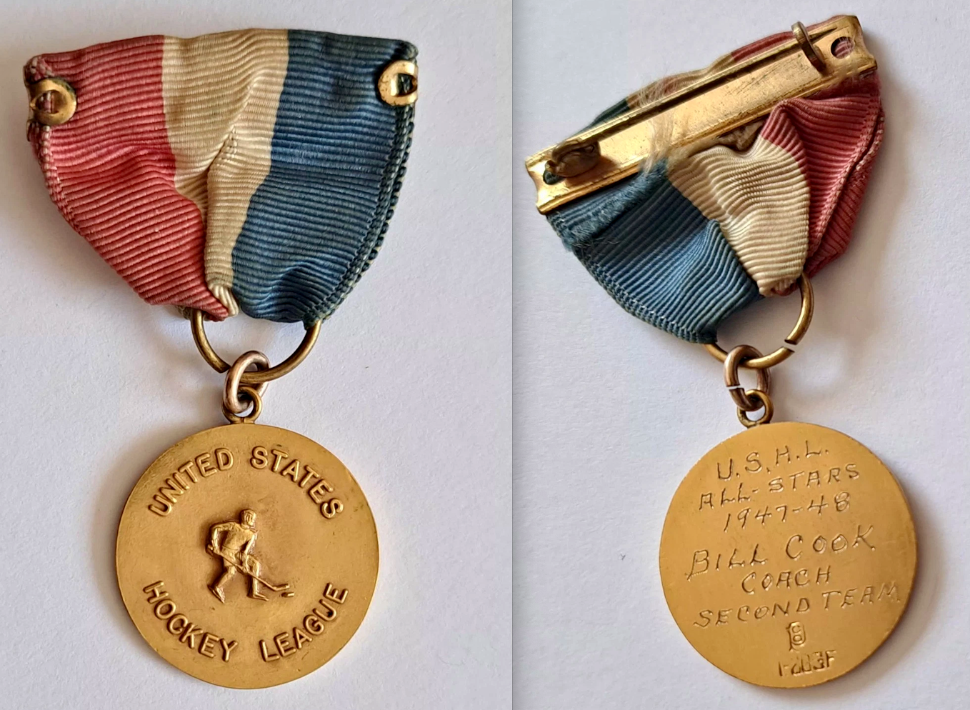 United States Hockey League Medal given to Minneapolis Millers coach Bill Cook for being coach of second team U.S.H.L. All-Stars 1947-48