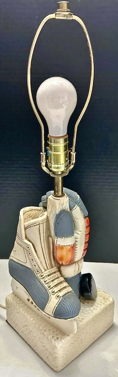 Vintage Ice Hockey Table Lamp with a Skates and a Glove as the Lamp base